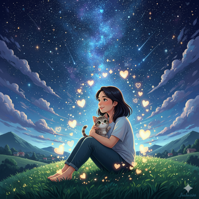 ① 溫馨家居場景 🏠🐱👉 指令:幫我生成一張圖片,真實的圖片,高畫質「一位有愛心的台灣女性,懷抱著一隻可愛的橘貓,坐在溫暖燈光的客廳沙發上,窗外灑落柔和夕陽光線,背景擺放著綠植與書架,呈現溫馨家庭氛圍,高質感寫實風格。」② 公益活動場景 🎤❤️👉 指令:幫我生成一張圖片,真實的圖片,高畫質「一位微笑的台灣女性,懷抱著她的貓咪,站在舞台上對著觀眾分享愛心故事,舞台背板寫著『毛小孩愛心圈』,現場有愛心標語與公益元素,現實攝影感,色彩明亮。」③ 戶外公園散步 🌳☀️👉 指令:幫我生成一張圖片,真實的圖片,高畫質「一位有愛心的台灣女性,抱著可愛的小貓,在綠意盎然的公園小徑上散步,陽光透過樹葉灑落,旁..